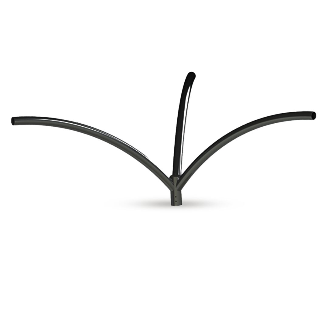 These brackets are utilized for street lighting and the extended arm aids in illuminating roadways. The up-sweep design allows for a wider distribution of light, improving visibility on the roadways. This bracket is designed to fit both metal and concrete poles, providing a versatile solution for various outdoor lighting needs.